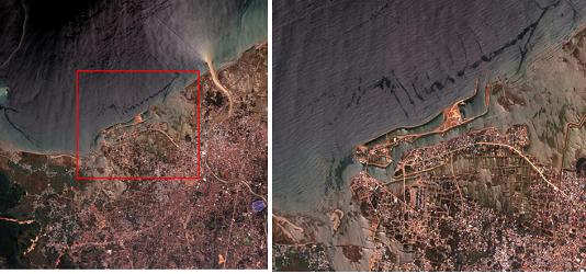 또한 다목적실용위성2호의 영상은 정부의 외교적, 인도적 차원의 국제공동협력사업에도 활용되고 있는데, 최근 감사원과 네덜란드, 미국, 인도네시아 등의 감사원이 인도네시아 정부, 세계은행, UN, NGO 단체 등의 긴밀한 협조를 받아 추진 중인 ‘쓰나미 복구 지원금의 효율적인 활용을 위한 감사 프로젝트’에 다목적실용위성2호가 촬영한 인도네시아 반다아체, 칼랑 지역 등의 쯔나미 피해지역 영상을 제공하였다.(사진 2 참조)