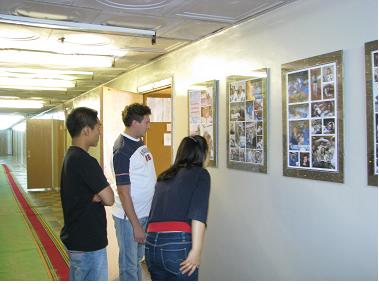 2. 복도에 걸린 과거 우주인들이 찍힌 사진들을 함께 보는 중