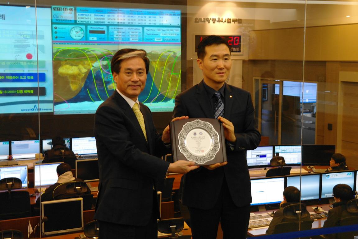 한국항공우주연구원(원장 이주진)은 국제인증원(ICR ; International Certification Registrar) 으로부터 위성임무관제업무 분야에 대한 ISO9001 품질경영시스템 인증을 획득하고 22일(수) 오전 11시 항우연 위성운영센터에서 인증서 수여식 및 현판식을 개최했다.
