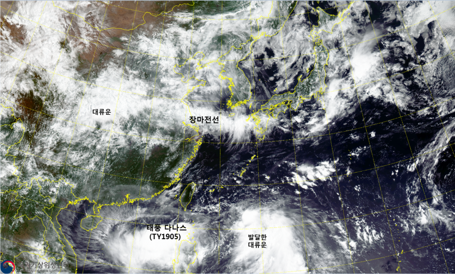 장마전선과 태풍 다나스(’19.7.17. 11:00KST) |