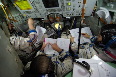 몸에 의학체크를 위한 심전도 장치를 달고, 그리고 통신을 위한 헤드셋도 하고, 이들 모두를 우주복의 연결부위에 연결하고, 우주복을 입고 소유즈 모형을 향해 걸어가면서, 언젠가 우주비행을 위해 우주복을 입고 실제 소유즈를 향해 걸어갈 생각을 하니 가슴이 벅차올랐습니다. 비행엔지니어가 먼저 왼쪽에 앉고, 그다음 내가 오른쪽에 앉고, 마지막으로 선장이 올라와서 가운데에 앉자 훈련은 시작되었습니다.