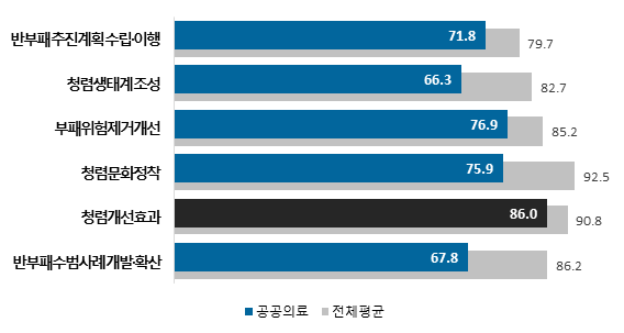 반부패 국정과제 및 5개년 반부패 종합계획 이행, 채용제도 개선 여부 등 신속한 정책추진과 사회적 이슈해소가 필요한 분야 중점 평가