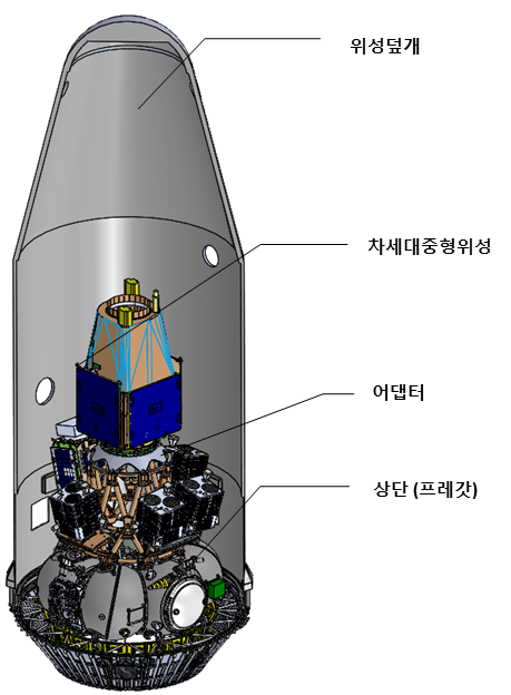차세대중형위성 1호 발사 연기 ◇ 발사 최종 준비점검 과정에서 발사체 상단(프레갓) 부분 이상 발견 |