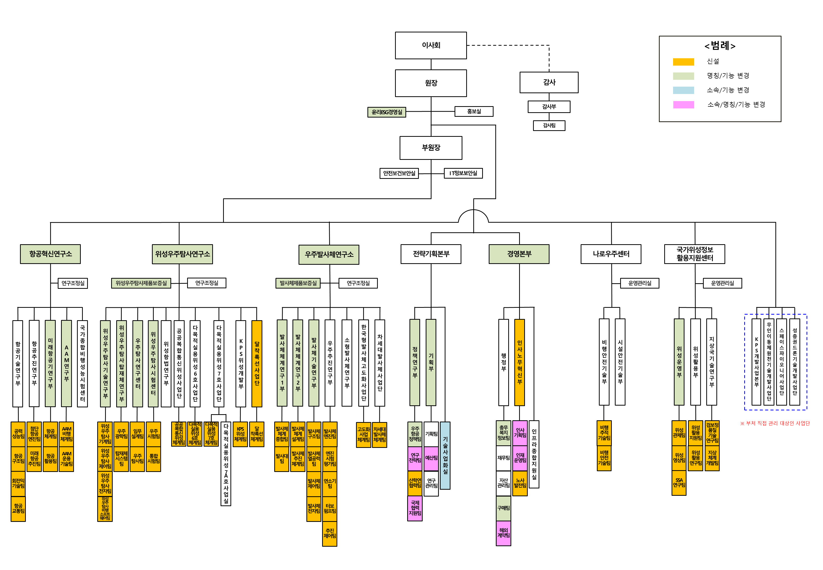 먼저, 우주항공청과 ‘원팀(One Team)’ 협력 체계를 더욱 강화하기 위해 기존 ‘항공연구소’를 ‘항공혁신연구소’로, ‘위성연구소’를 ‘위성우주탐사연구소’로 명칭을 변경하고 조직을 정비했다.