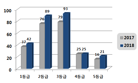※ 등급 내 가나다순, ( ) : ‘17년 대비 등급 변화 정도