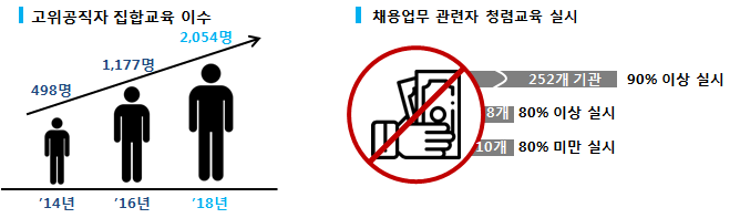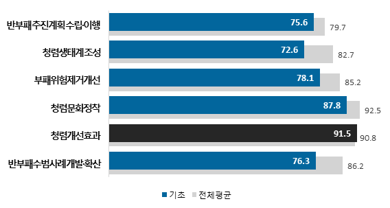 ○ 반부패 국정과제 및 5개년 반부패 종합계획 이행, 채용제도 개선 여부 등 신속한 정책추진과 사회적 이슈해소가 필요한 분야 중점 평가