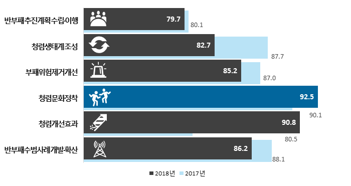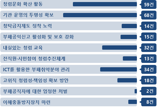 2-1. 부패취약분야 개선(0.45) 2-2. 공직자 행동강령 제도화(0.30) 2-3. 부패행위 처벌‧관리 강화(0.25) |