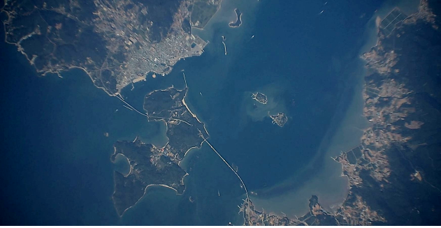 <‘EAV-3’가 고도 18.5km에서 촬영한 전남 소록도 일대 전경>
