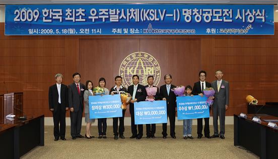 한국항공우주연구원(원장․이주진)은 2009년 5월 18일(월) 오전 11시, 한국항공우주연구원 연구1동 국제회의실에서 한국 최초 우주발사체 명칭공모전 시상식을 가졌다.