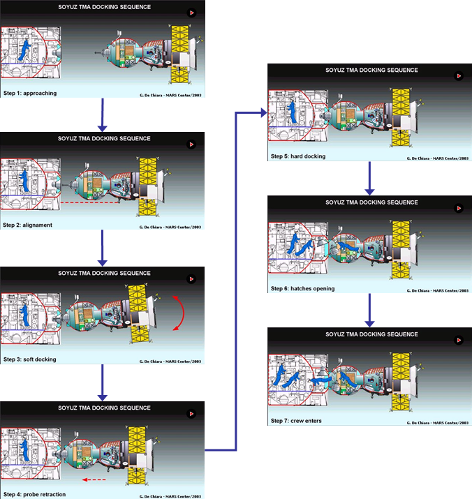 소유즈 우주선의 도킹부분을 국제우주정거장의 도킹부분과 일치시킴 |