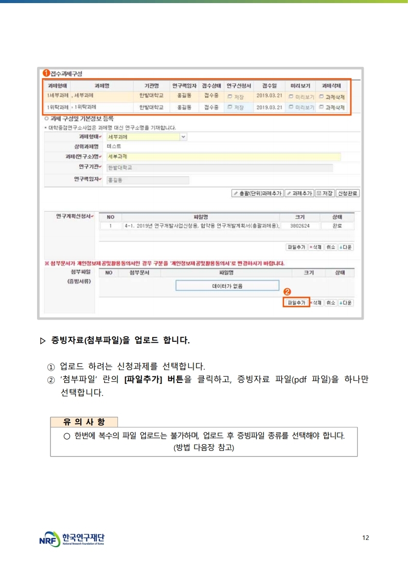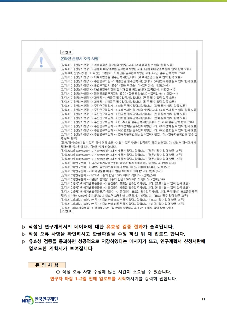 ex) 연구자등록번호 9자리 입력, 기관코드 7자리 입력 시 오류발생