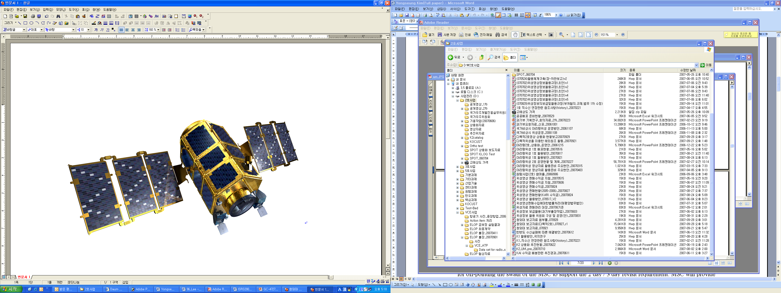 ㅇ 당시, 위성체 설계 및 제작은 항우연과 29개 국내기업의 참여로 수행하였고, 탑재체는 이스라엘 ELOP社와 공동(4년간 20명 파견)으로 개발하였다.