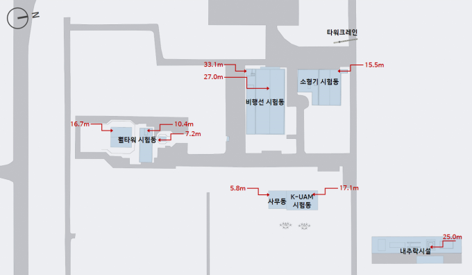 <국가종합비행성능시험센터 내 기존건물들의 최고높이>