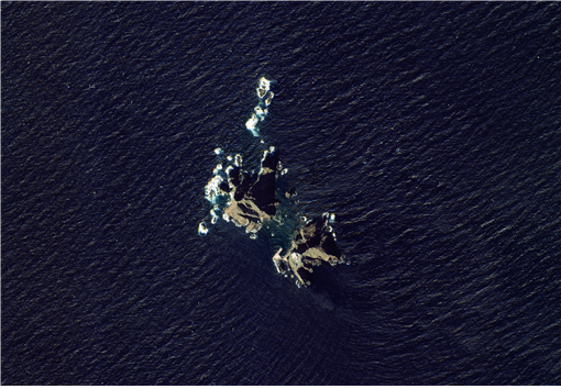□ 독도 위성사진에는 동해의 파도 물결과 서도와 동도의 모습이 뚜렷하게 보이는 가운데, 아리랑위성 3A호가 촬영한 독도 위성사진에는 주변 작은 암초들에 부딪혀 생긴 하얀 파도의 모습과 아래쪽 동도에 설치된 헬리콥터 착륙장과 선착장 등이 선명하게 보인다.