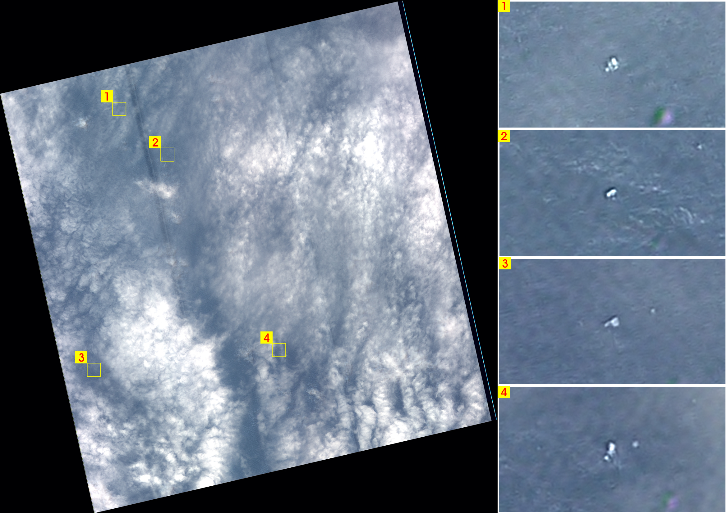이번 영상에서 관측된 물체는 이전의 해외 위성이 포착한 추정물체와 유사한 형태로 물체의 테두리가 각을 이루는 형태를 띠고 있어 일반적인 해양 부유물과는 다른 것으로 추정된다.