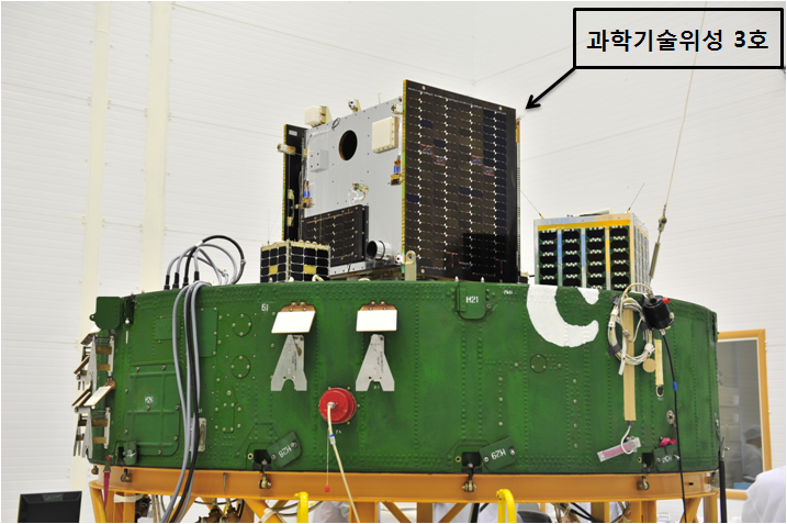 < 발사체 상단 플랫폼에 장착된 과학기술위성 3호 >