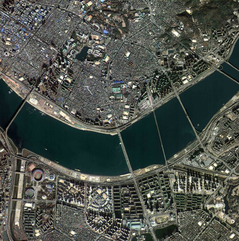 가. 서울 잠실지역과 평양 5월 1일 경기장(능라도) 주변지역 위성영상