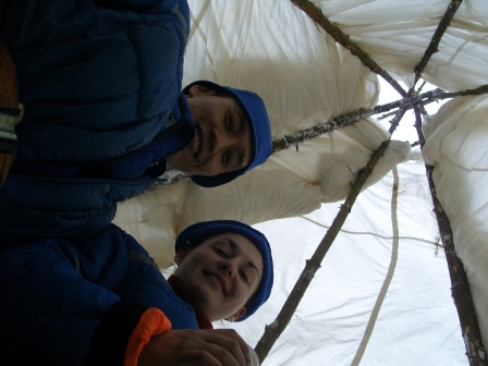 불을 피워 놓은 티피 내부는 어제 지었던 움막에 비해 한결 아늑하고 따뜻했다. 이날 밤에 눈이 정말 많이 내렸는데, 이 안은 전혀 다른 세상이었다.