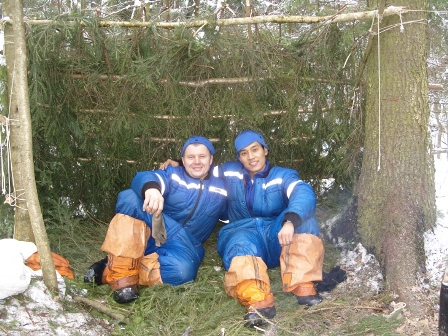 몇 시간 후면 러시아의 긴 겨울밤이 시작될 것이었기 때문에 우리는 서둘러서 추위를 피하고 하룻밤을 무사히 보낼 수 있는 임시 거처를 마련하기로 했다. 가지고 있는 도구만으로 훌륭한 움막을 만들 수 있는 방법은 이미 이론 수업 시간을 통해 숙지하고 있었다.