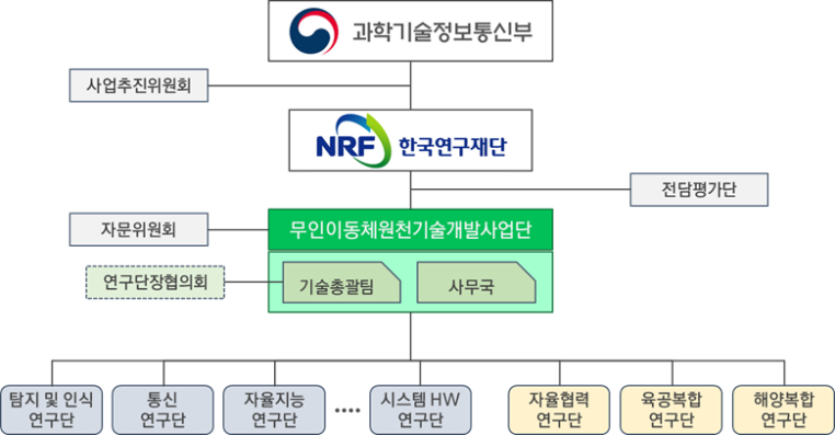 각 연구단 또는 단일 과제별 컨소시엄을 구성해 무인이동체 원천기술개발사업을 수행