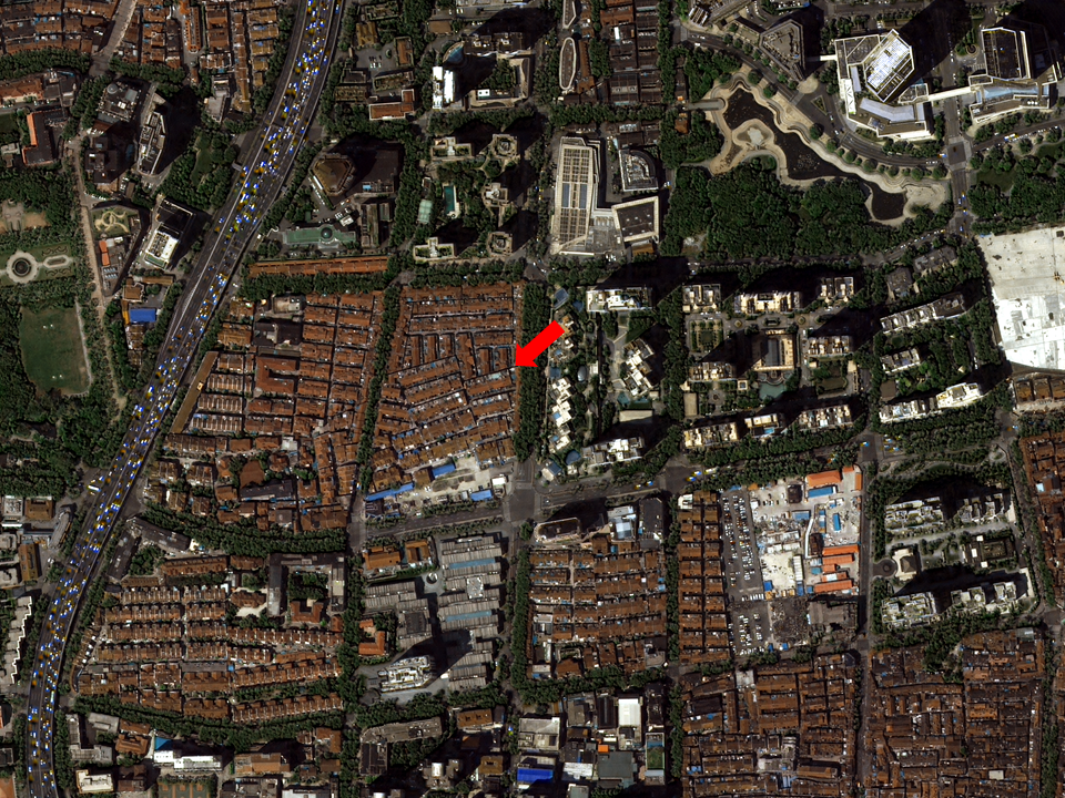 - 다목적실용위성 3A호가 촬영한 상해 임시정부. 현재 유럽풍 거리로 유명한 신천지거리 맞은편에 위치해 있다.