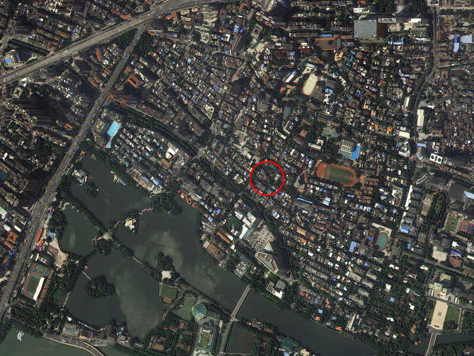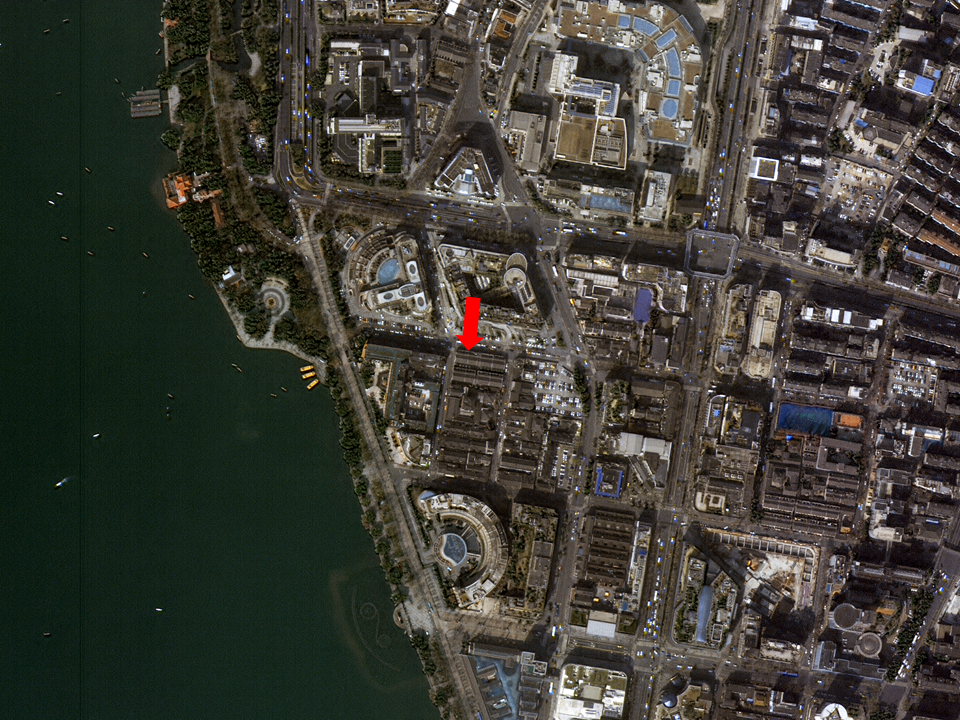 - 다목적실용위성 3A호가 촬영한 두 번째 임시정부인 항저우 임시정부로, 왼쪽으로는 서호가 위치해 있다.