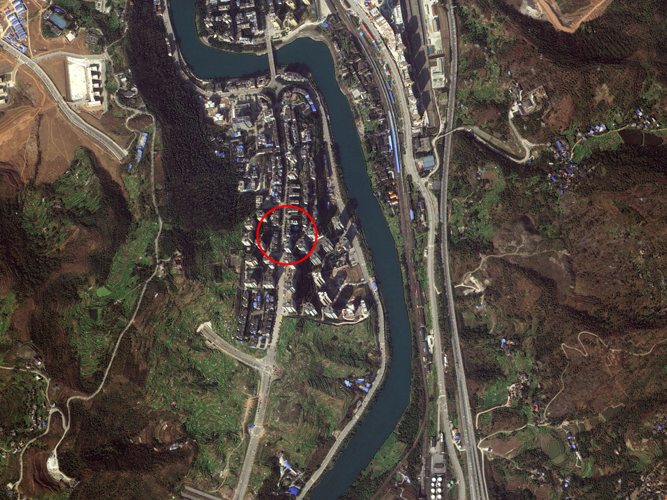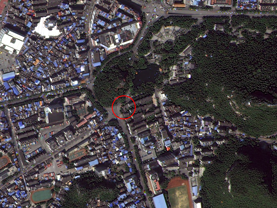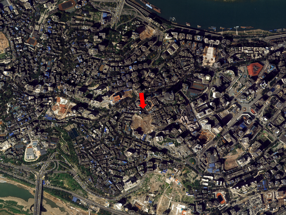 - 다목적실용위성 3A호가 촬영한 충칭 임시정부로, 상해 임시정부에서 가장 멀리 떨어져 있다. 중국 내 임시정부 청사 중 가장 큰 규모다. 재개발 중인 아파트촌과 주택가 한가운데 위치해 있다.