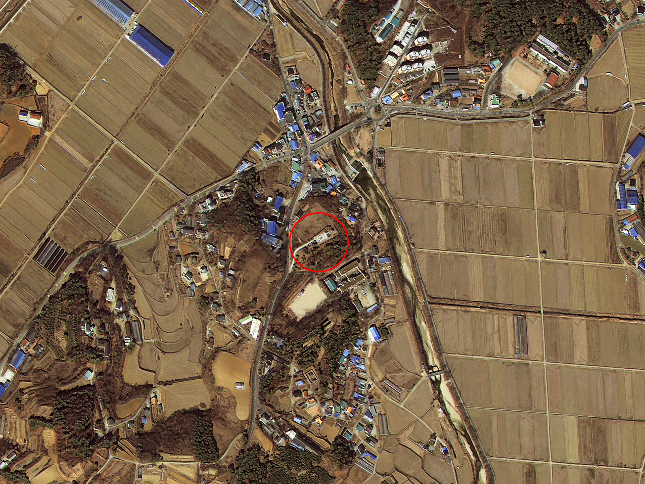 <홍동3.1운동 기념비와 삼일각> 다목적실용위성3호, 2019.1.29. |