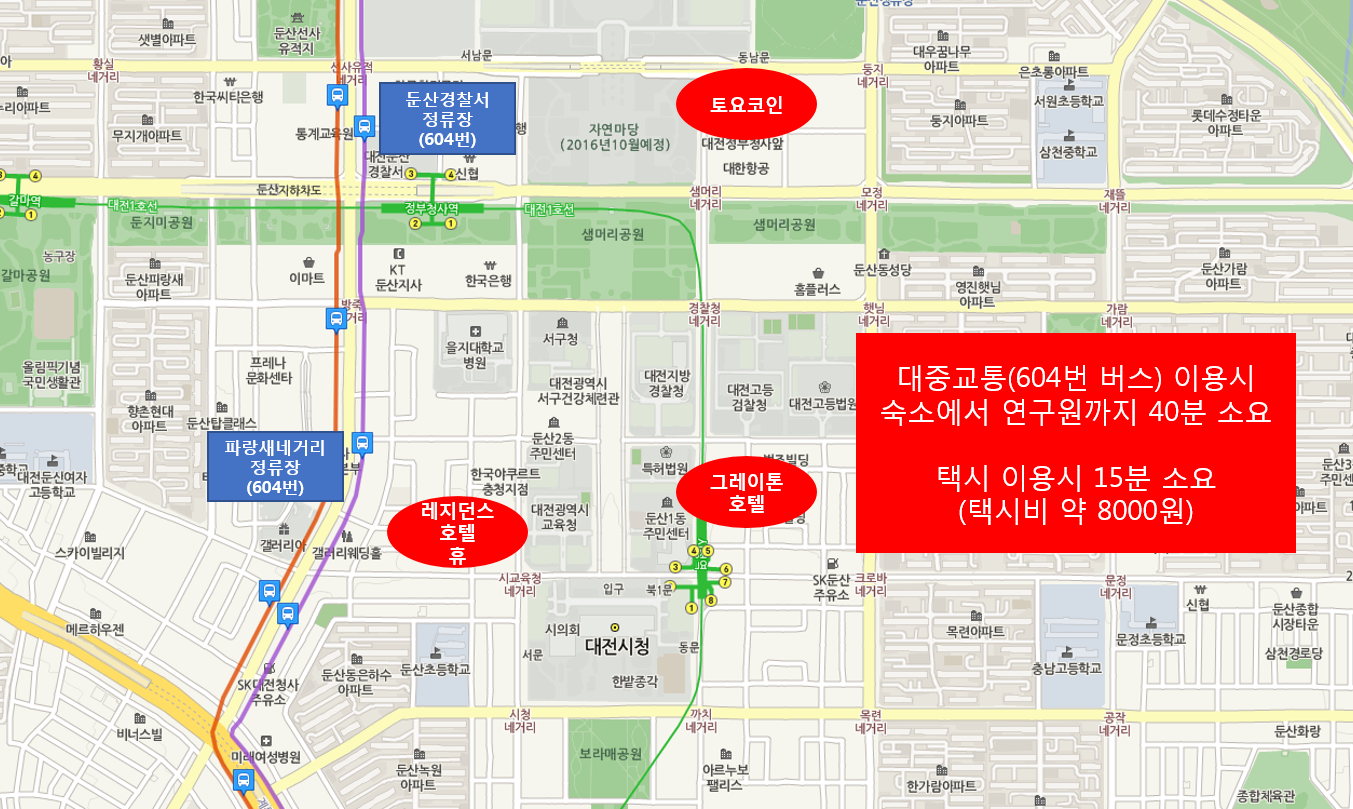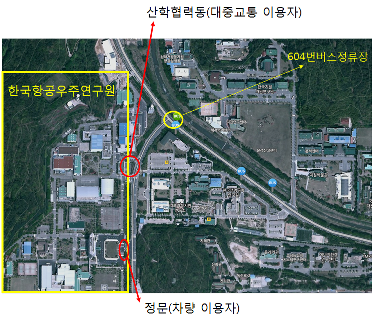 ※ 한국항공우주연구원 버스정류장 604번(배차간격 12분)