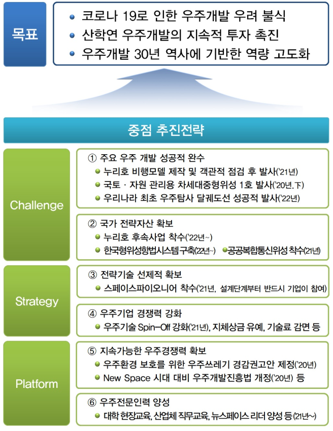 - 코로나19로 인한 우주개발 우려를 불식하고 산학연의 지속적 투자 촉진