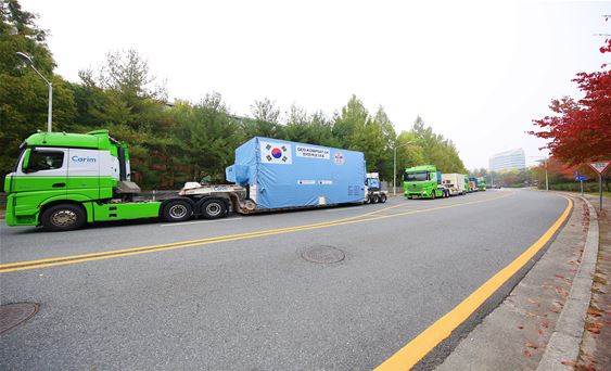 천리안위성 2A차세대소형위성 1호모든 운송과정에서 항우연이 자체 개발한 무진동 항온항습 위성용 컨테이너에 실려 이동한다.