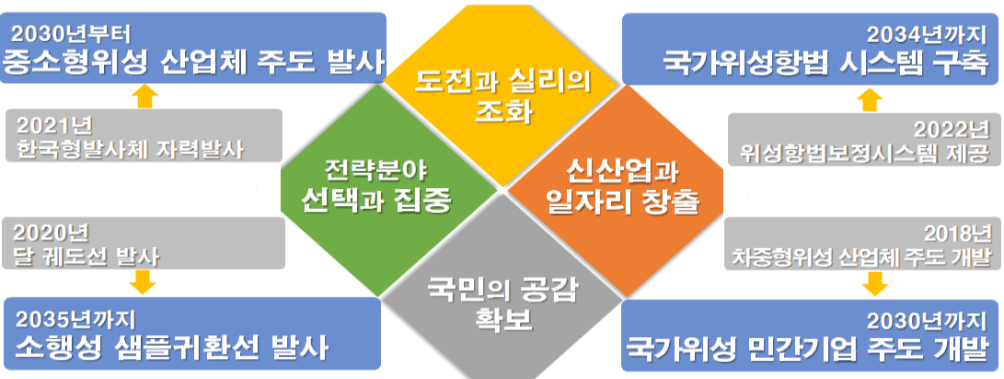 ㅇ 국가안보, 공공활용 및 신산업 창출 등 효과적 위성정보 확보 및 활용을 위해 첨단 위성기술 확보를 통한 자력 개발역량 확보 및 국가위성 운용