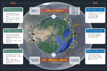 ㅇ 초소형위성을 활용한 국가위기 대응 서비스 체계를 ‘22년까지 구축하여 현재 촬영주기(24시간+α)를 대폭 단축해 약 1시간 단위로 관측한 재난‧재해 서비스를 제공함으로써 국가위기에 효율적으로 대응할 수 있게 된다.