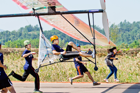□ 인간동력항공기 경진대회는 기계적인 동력을 사용하지 않고 사람의 힘만으로 비행할 수 있는 가볍고 우수한 공기역학 성능의 가진 항공기를 개발하는 능력을 겨루는 대회로, 400m 거리를 가장 빠르게 비행한 팀이 우승하게 된다.
