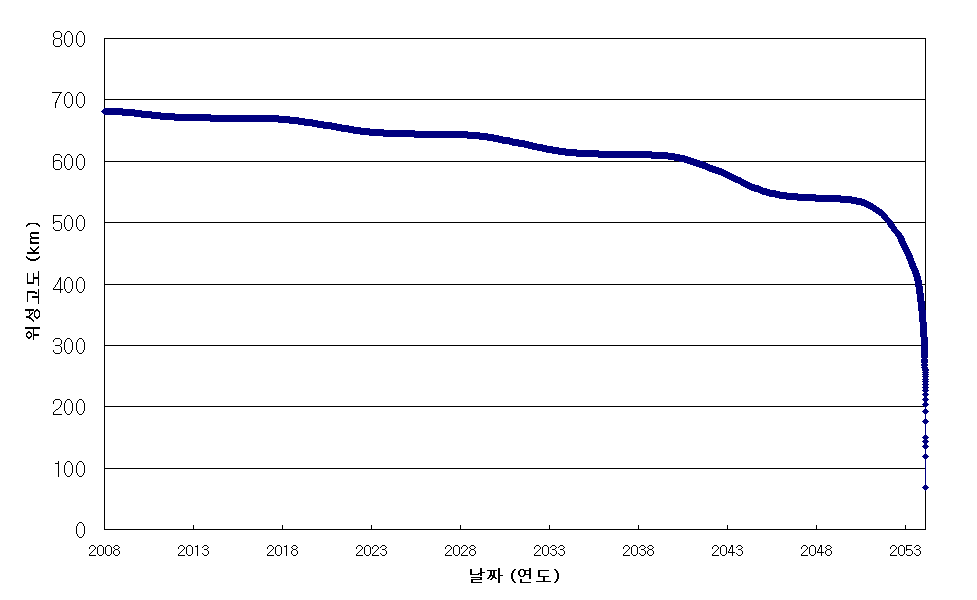 첨부】 3. 아리랑 1호자연 고도 강하 예측그래프