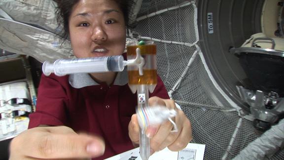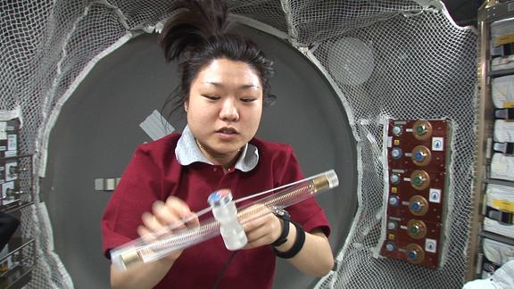 우주에서의 물의 모양 및 물속에 공기 등을 넣어 현상 관찰