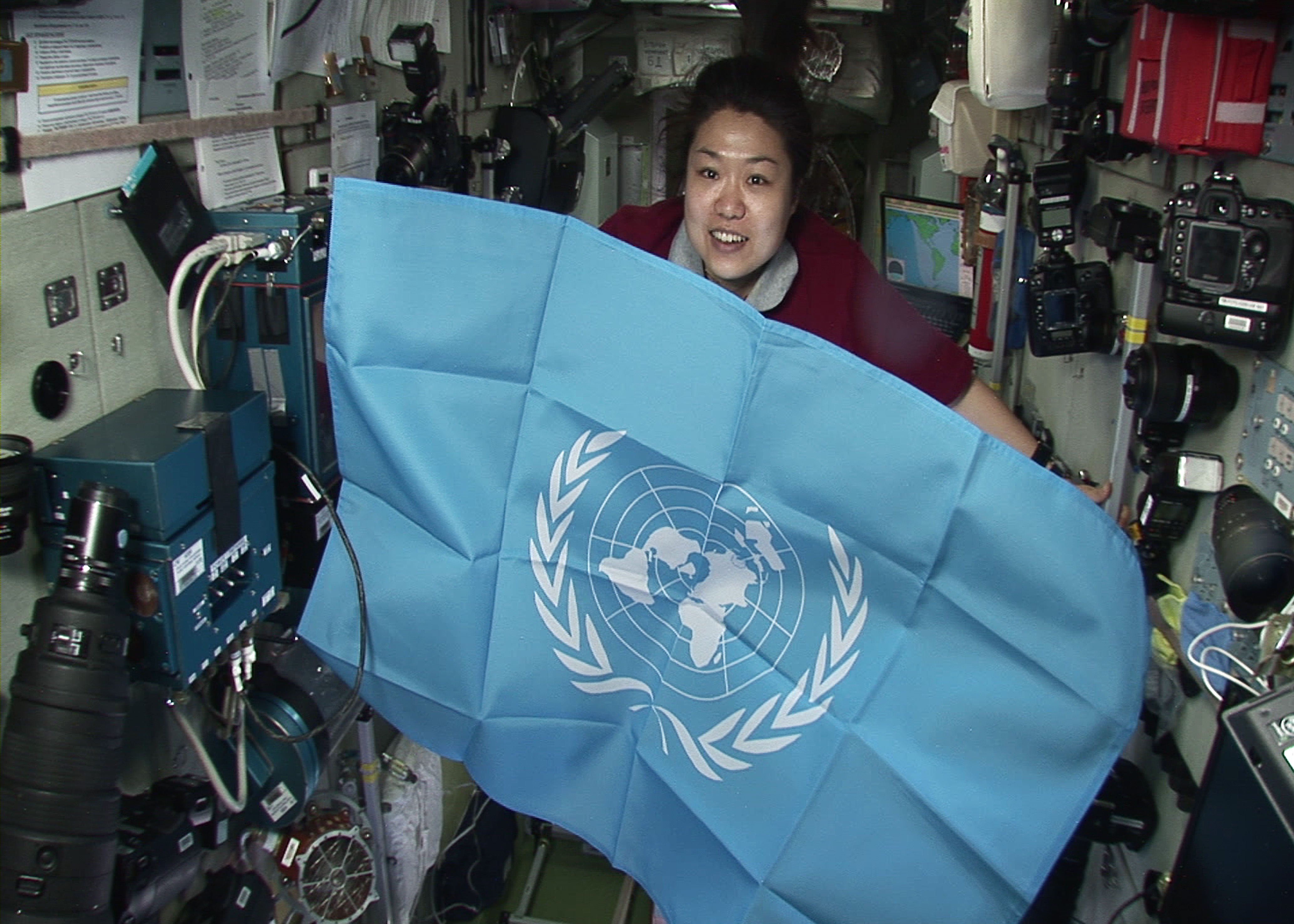 이 박사는 전달받은 UN기를 국제우주정거장(4.8~4.19)에 가져가서 한국과 UN간의 우의를 상징하는 퍼포먼스를 수행한 뒤 지구로 되가져왔으며, 이번 반 총장의 방한을 계기로 동 깃발을 반환하게 되었다. 이 박사는 소유즈 TMA-12 승무원인 세르게이 볼코프, 올레그 코노넨코와 함께 찍은 우주인 사진을 반 총장에게 선물로 증정할 예정이다.