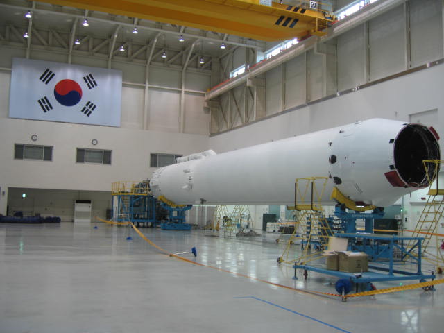 [그림1] 러시아로부터 인도받아 나로우주센터 조립동에서 총조립을 위해 최종 점검 중인 나로호 1단 모습