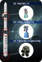* 누리호 1단은 75톤급 엔진 4개를 묶는 클러스터링 작업을 통해 300톤급 추력을 갖게 됨 (1단 추력 : 300톤급 / 2단 추력 : 75톤급 / 3단 추력 : 7톤급)