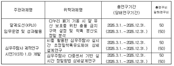 2026년도 한국항공우주연구원에서 수행 중인 기본사업의 위탁연구과제 관련 재공모를 아래와 같이 진행하오니 관심있는 기관들의 많은 신청바랍니다.