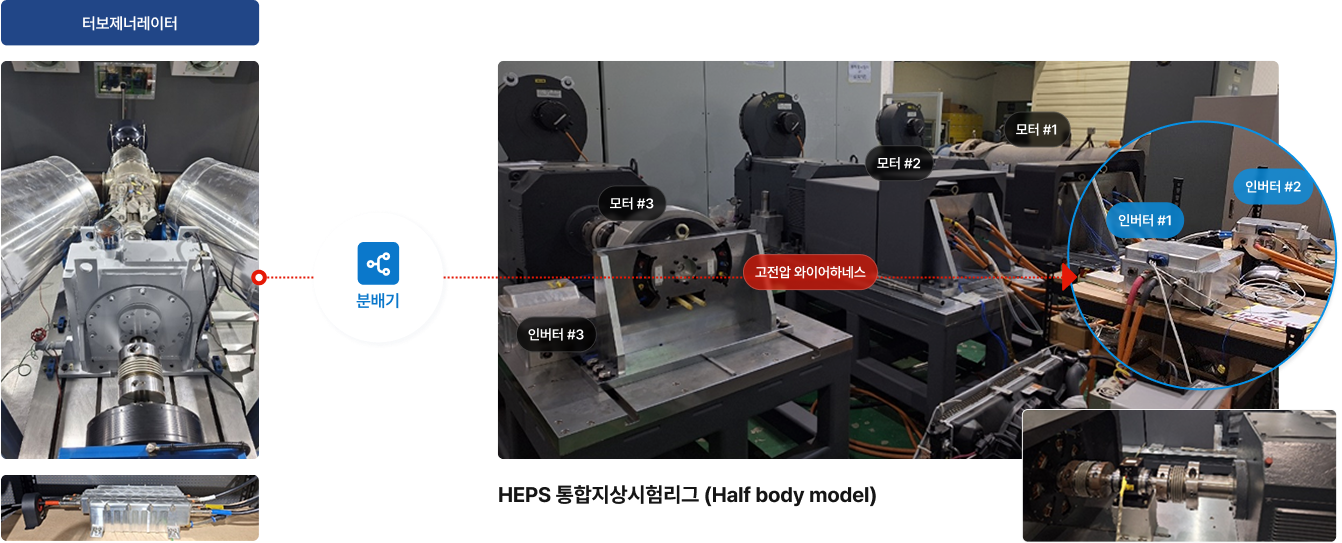 2021년부터는 장거리/고속 eVTOL 및 eCTOL에 적용이 가능한 가스터빈기반 하이브리드 전기추진시스템 통합기술개발에 착수하여 시스템 설계/해석, 구성품 요구도 도출 및 개발, 서브 시스템 시험평가를 거쳐 2024년말 기준으로 통합 지상시험리그 구축을 완료하여 하이브리드 전기추진시스템 통합 성능 평가를 진행 중에 있다.
